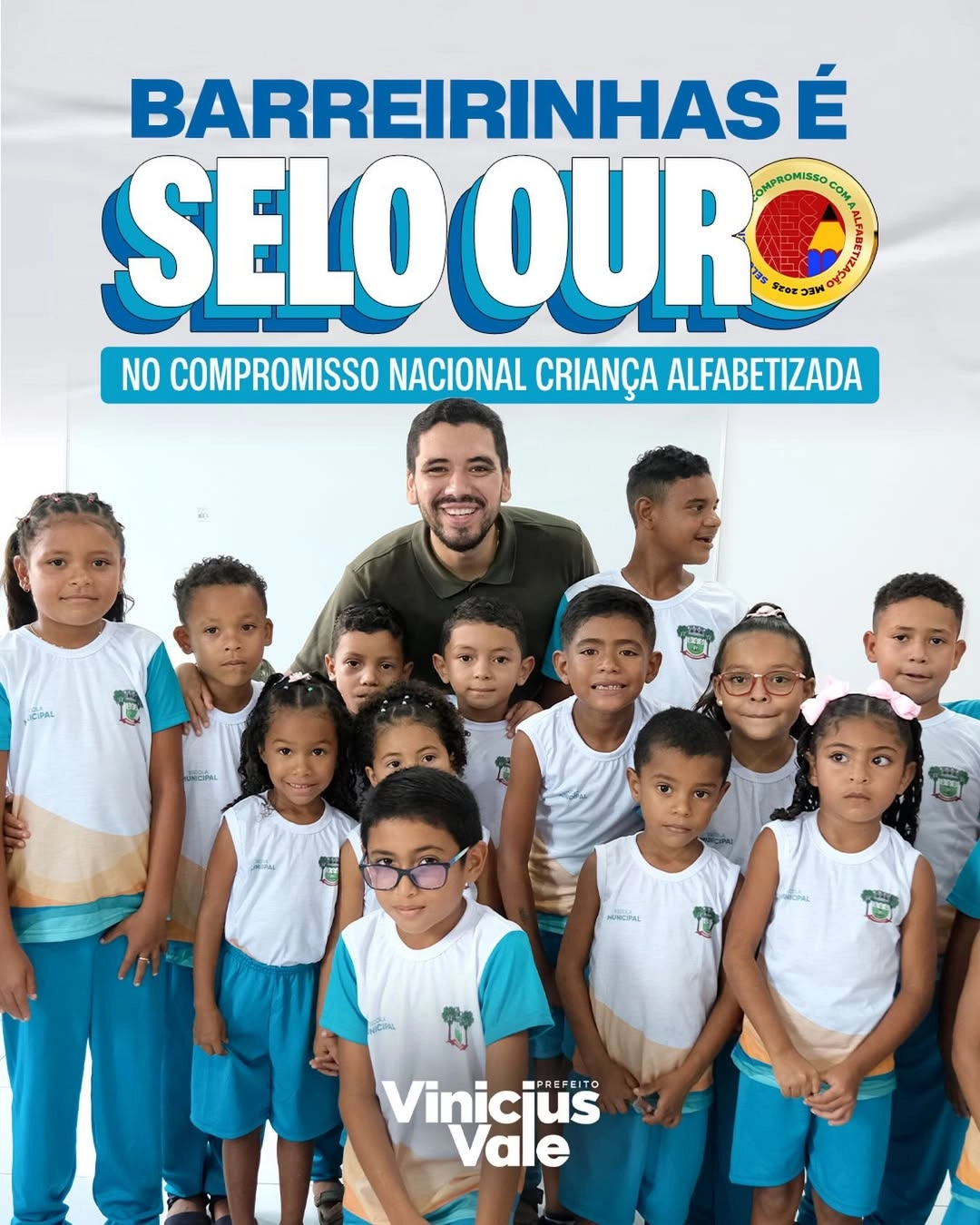 Recebemos o Selo Ouro no Compromisso Nacional Criança Alfabetizada, resultado dos esforços para que as nossas crianças sejam alfabetizadas na idade certa e continuem na sala de aula.